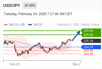 USD/JPY lygiai šiandien: 155.90 155.60 155.16 154.70 154.45 154.20